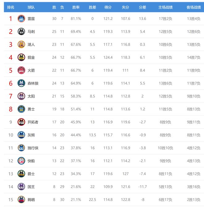 獨(dú)行俠贏球后2連勝,戰(zhàn)績(jī)14勝23負(fù),排名從西部第12升到第11,快船變成第12,國(guó)王輸球后8勝29負(fù)排名西部第14。