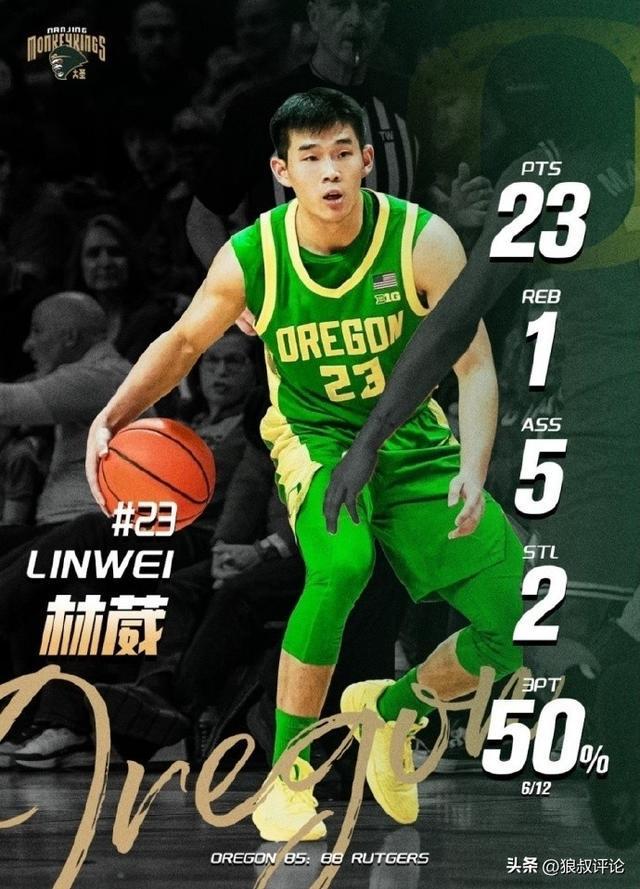 上一場,俄勒岡大學以85-88不敵羅格斯大學。林葳出戰(zhàn)33分鐘,14投8中,其中三分12投6中,獲得23分1籃板5助攻2搶斷。
