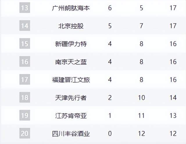 最后三名天津、江蘇和四川已經(jīng)基本鎖定就是后三名位置。這三支球隊不僅在戰(zhàn)績上落后,在陣容深度和比賽經(jīng)驗方面也存在明顯差距,想要在賽季后半程實現(xiàn)逆襲難度極大。