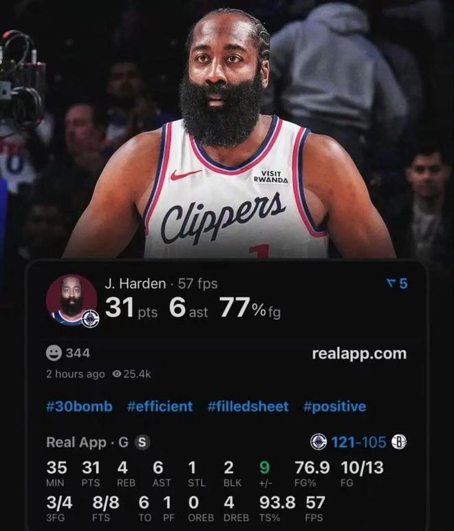 - 哈登生涯19場(chǎng)比賽出手少于15次轟30+!聯(lián)盟歷史后衛(wèi)第一人
