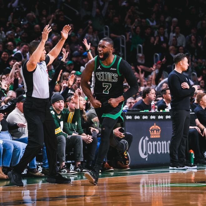 雙方在第三節(jié)開始后拉鋸幾個回合,文班亞馬連進(jìn)兩球,馬刺隊以59-62落后。加扎跳投還擊,文班亞馬保持攻擊性又得5分,馬刺隊追成64平。加扎和布朗分別投中三分幫助凱爾特人隊再次領(lǐng)跑,約翰遜回應(yīng)三分,布朗又中三分,??怂惯B投帶罰得到4分,三節(jié)結(jié)束時馬刺隊以73-75落后2分。