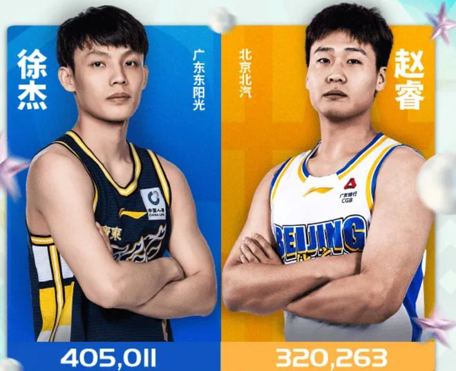 - CBA全明星投票首周票數(shù)公布:徐杰、趙睿分別當(dāng)選南北區(qū)票王