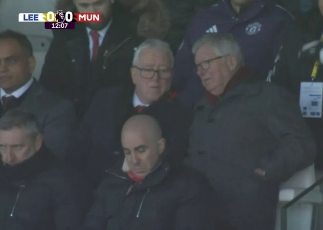 看臺上與昔日球衣管理員阿爾伯特·摩根一起看球的弗爵,也顯得有些百無聊賴。