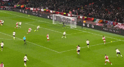 第27分鐘,拉亞出擊將加布里埃爾的回傳球解圍,但沒(méi)有踢遠(yuǎn),布拉德利得球直接吊門,這球擊中橫梁彈出。