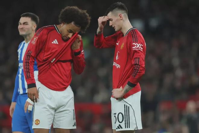 在阿莫林下課之后,達(dá)倫·弗萊徹成為曼聯(lián)的臨時主帥。在上一輪英超比賽中, 曼城2-2戰(zhàn)平保級球隊伯恩利。此番足總杯比賽面對布萊頓,達(dá)倫·弗萊徹對首發(fā)陣容做出了小幅度輪換,盧克肖輪休,卡塞米羅、海文替補(bǔ),梅努,約羅和達(dá)洛特進(jìn)入首發(fā)陣容。然而,曼聯(lián)在主場依舊是“雷聲大雨點小”,他們?nèi)珗隹褶Z19腳卻只進(jìn)1球:謝什科終場前頭球扳回一分,但為時已晚。