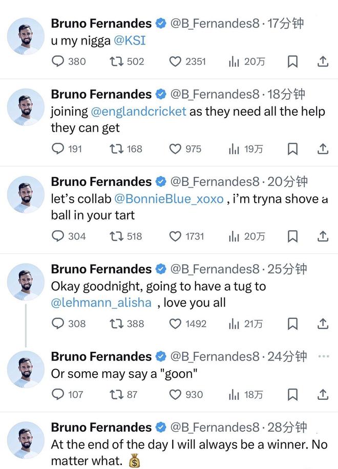 - B費(fèi)社媒被盜后瘋狂連更:呼吁擺脫英力士+發(fā)紅軍7-0曼聯(lián)比分