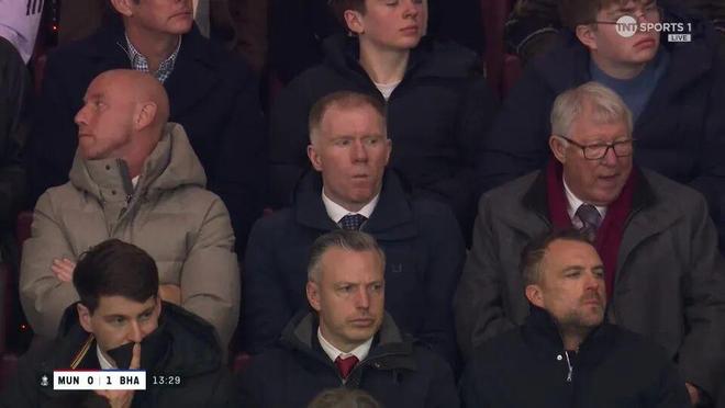 曼聯(lián)球員普遍沒穿射門靴,謝什科、利馬和庫尼亞等人的起腳,不是沒有打正目標(biāo),就是被封堵。紅魔0-1落后返回更衣室,看臺上的弗爵和他的昔日弟子斯科爾斯、尼基·巴特愁眉深鎖。