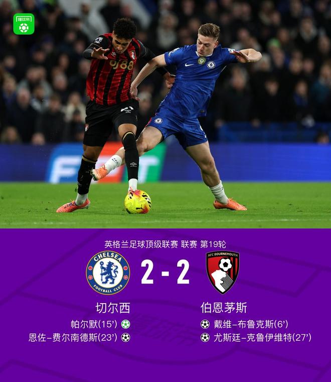 - 2025年12月31日 切爾西2-2伯恩茅斯7輪僅1勝 伯恩茅斯10輪不勝帕爾默點射恩佐破門