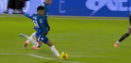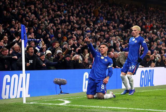 第23分鐘,恩佐策動反擊,隨后接到加納喬的橫傳,禁區(qū)內(nèi)晃開角度抽射直掛死角,切爾西反超比分,2-1!