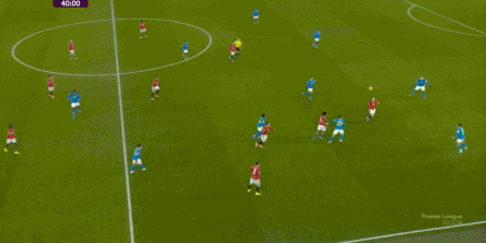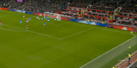 在大面兒上,依然是343的站位,通過這一站位和人員結(jié)構(gòu)來在防守端出力,倒是還說得通,但是在進(jìn)攻端,開局的曼聯(lián)已經(jīng)展現(xiàn)出需要依靠庫尼亞單打的情況了: