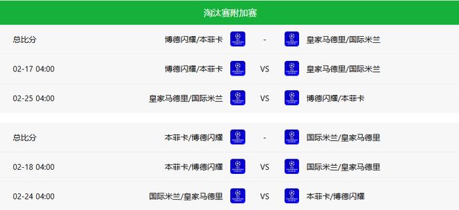 全部附加賽結(jié)束后,歐冠16強(qiáng)名單將正式出爐,并于2月27日進(jìn)行真正的16強(qiáng)抽簽。